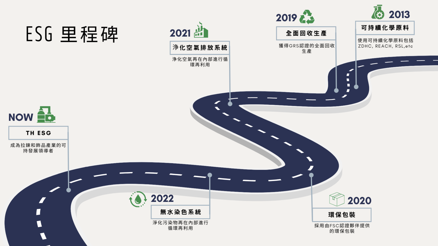 作為每年生產數百萬計的拉鍊和飾品制造商,TH深信參與ESG的重要性。從實踐可持續製造至鼓勵合作夥伴與我們同行,TH致力於環境和社會方面產生正面影響,進一步實現長遠可持續發展。